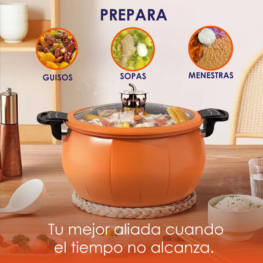 Esta olla a presión proporciona una experiencia de cocción perfecta con control de temperatura mejorado, distribución uniforme del calor y tiempos de cocción más rápidos. Su diseño en forma de calabaza y aspecto elegante complementan cualquier decoración de cocina. Ideal para todos los entusiastas de la cocina, es el regalo perfecto para familiares y amigos que disfrutan de aventuras culinarias.
